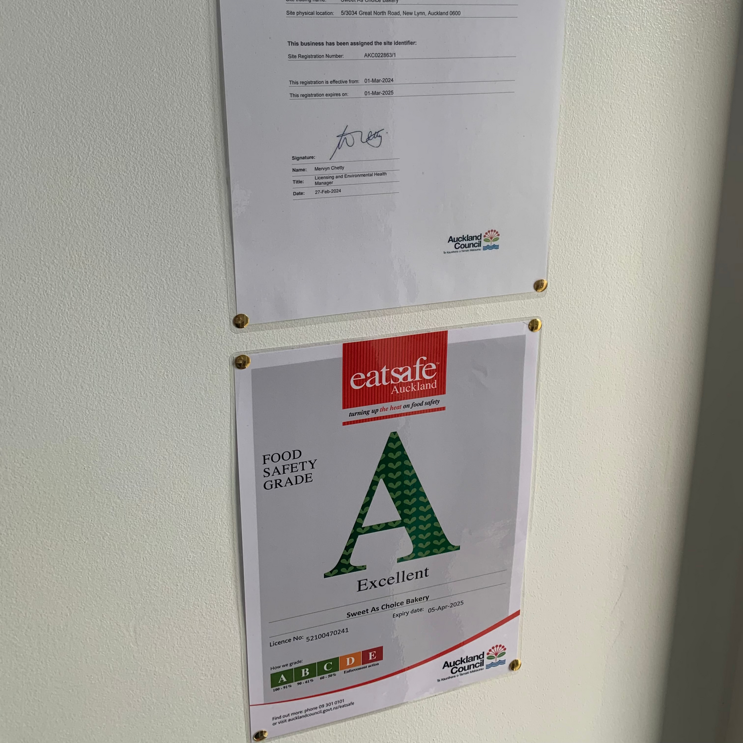 Registered Commercial Kitchen and an A Grade Rating on Display!