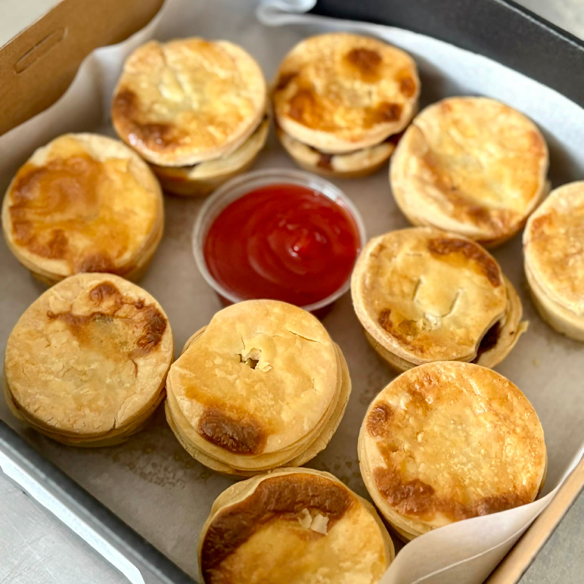 Contains 10 Gluten Free House Made Mince Savouries with Tomato Sauce Pots